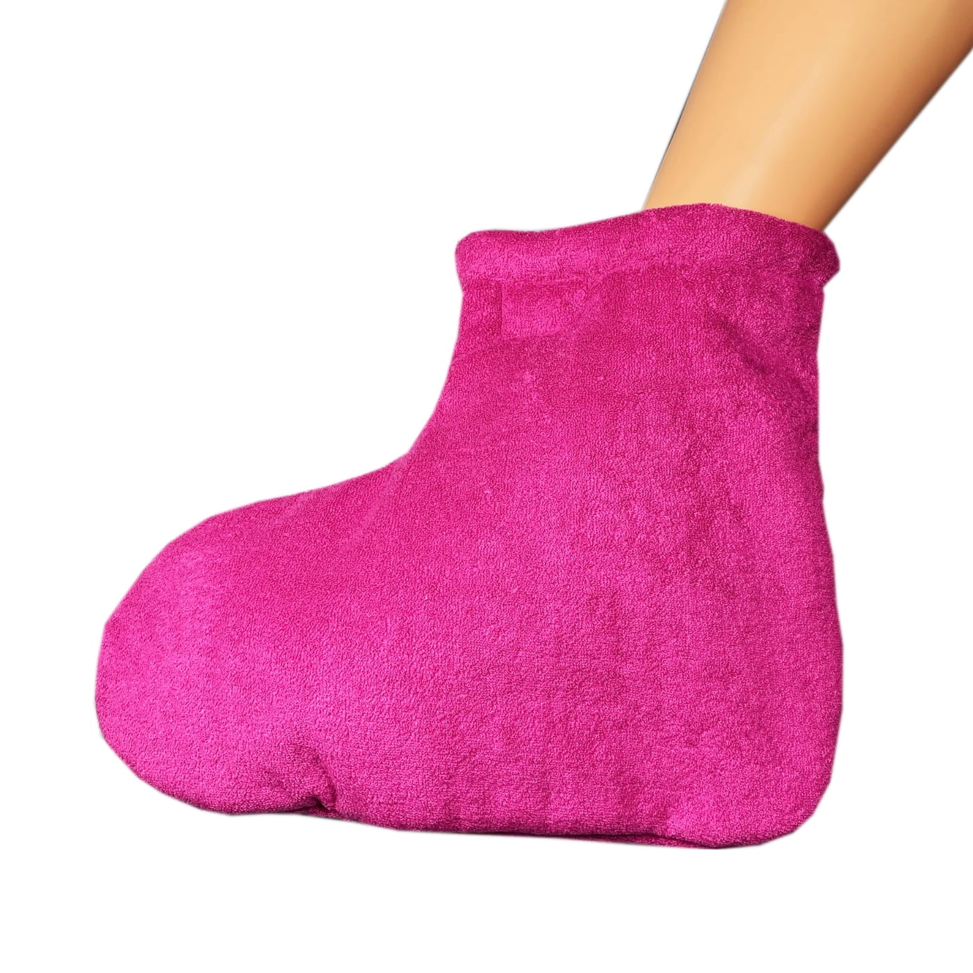 Buciki doskonale utrzymują ciepło po zabiegach parafinowych. Dzięki temu wspierają efekty pielęgnacyjne oraz komfort klienta. Ponadto gruba struktura materiału sprzyja relaksowi po zabiegu.