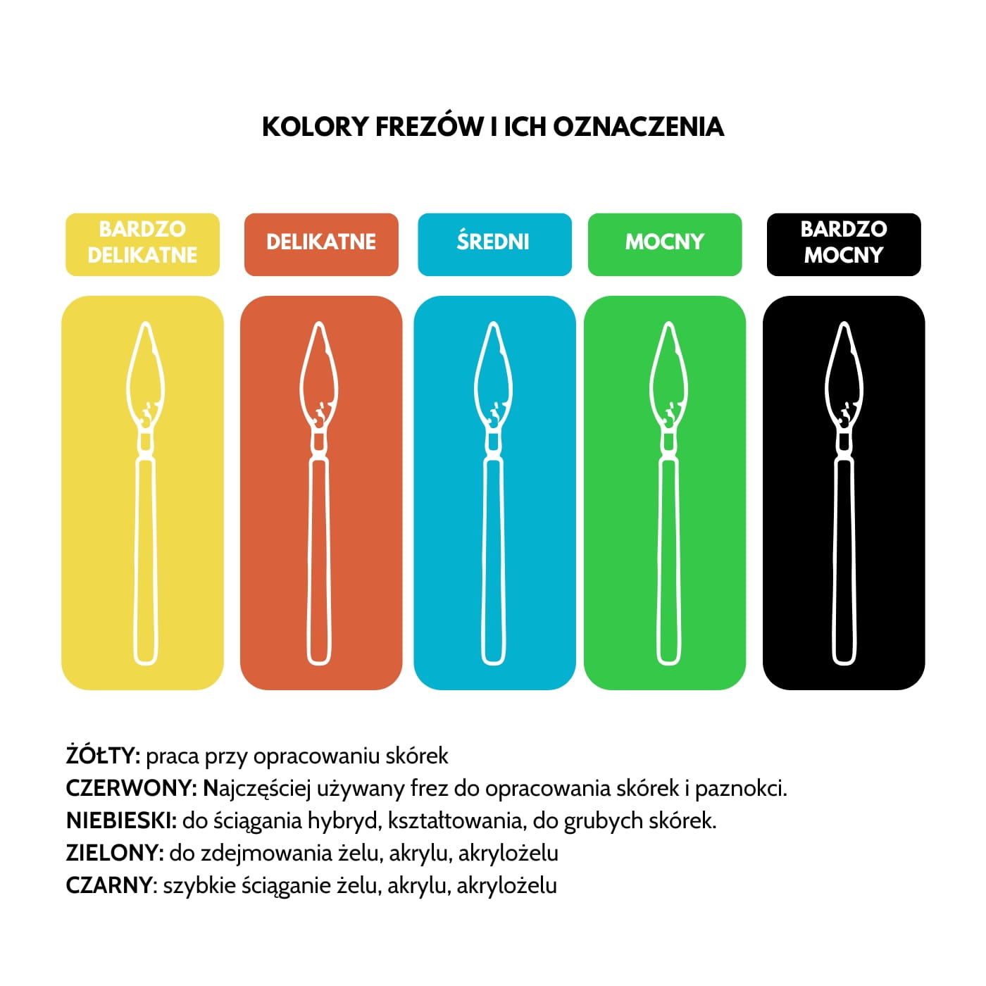 Frez o średnicy 2,1 mm umożliwia dokładną pracę przy skórkach oraz w okolicach paznokcia. Dzięki temu sprawdza się podczas oczyszczania i wygładzania skóry.