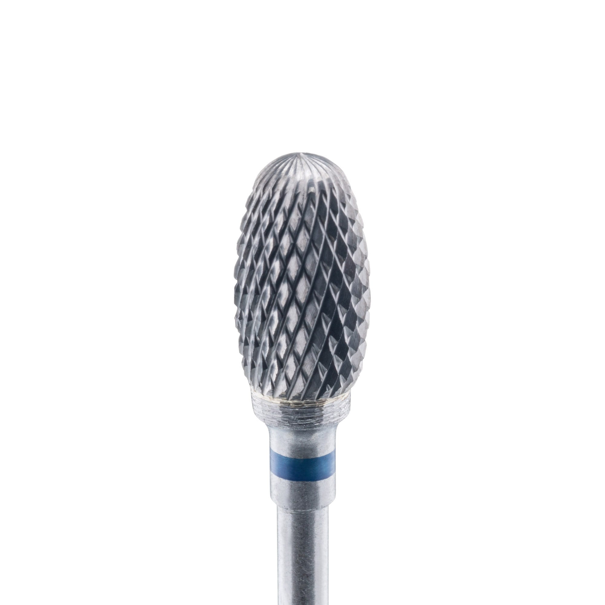 Frez z węglika spiekanego w kształcie szyszki o średnio mocnych nacięciach krzyżowych.