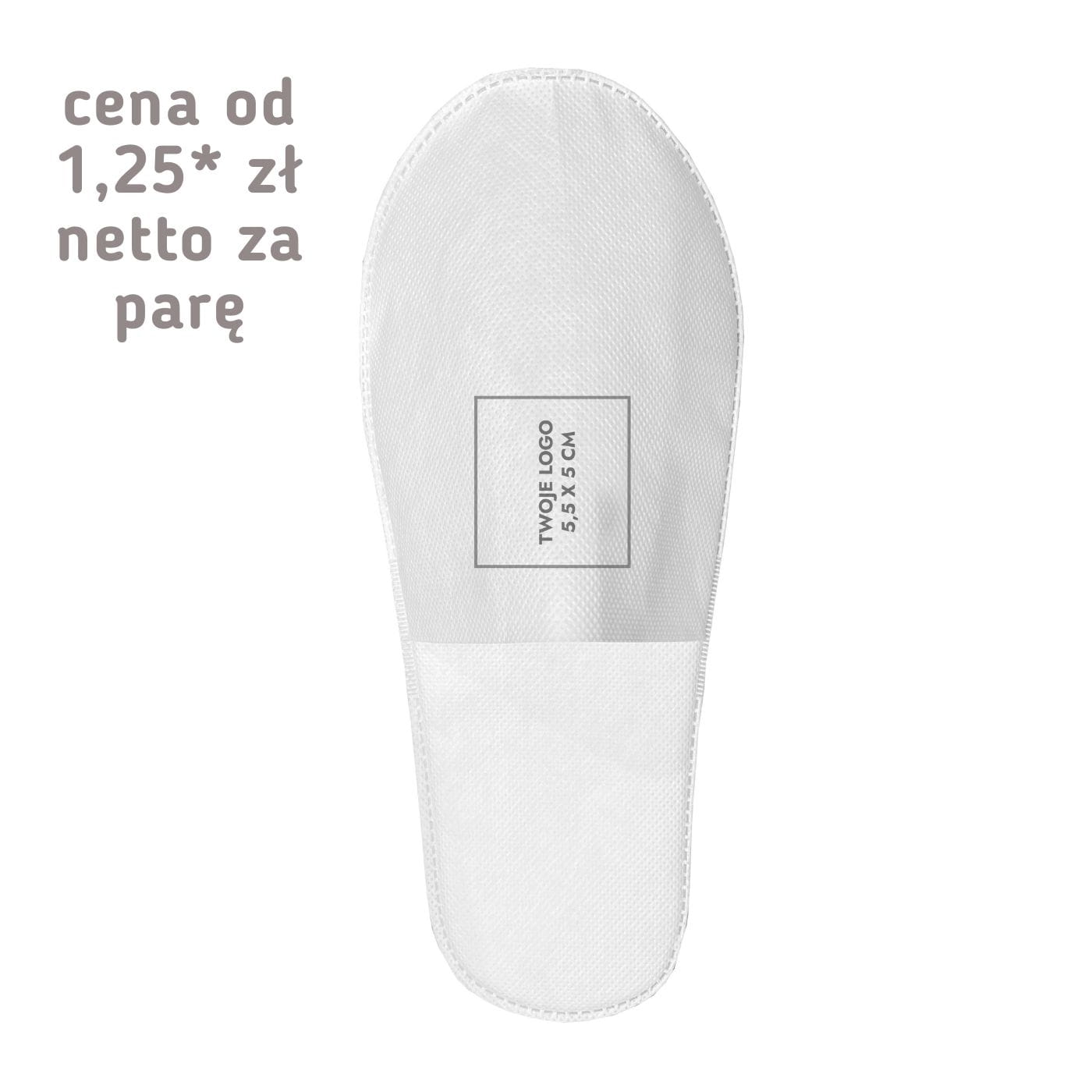 Kapcie jednorazowe włókninowe z Twoim logo białe pakowane zbiorczo – QMS Line Silver