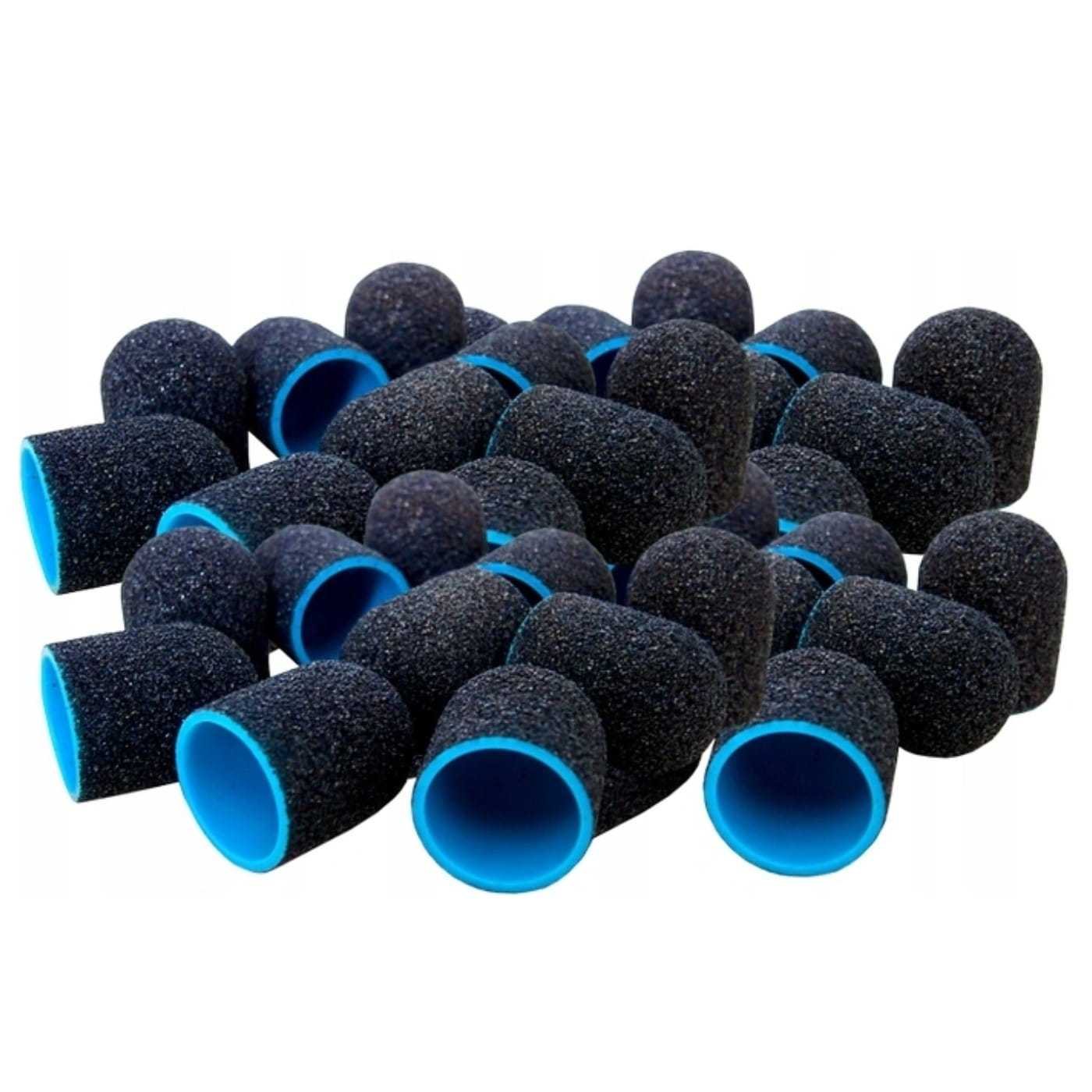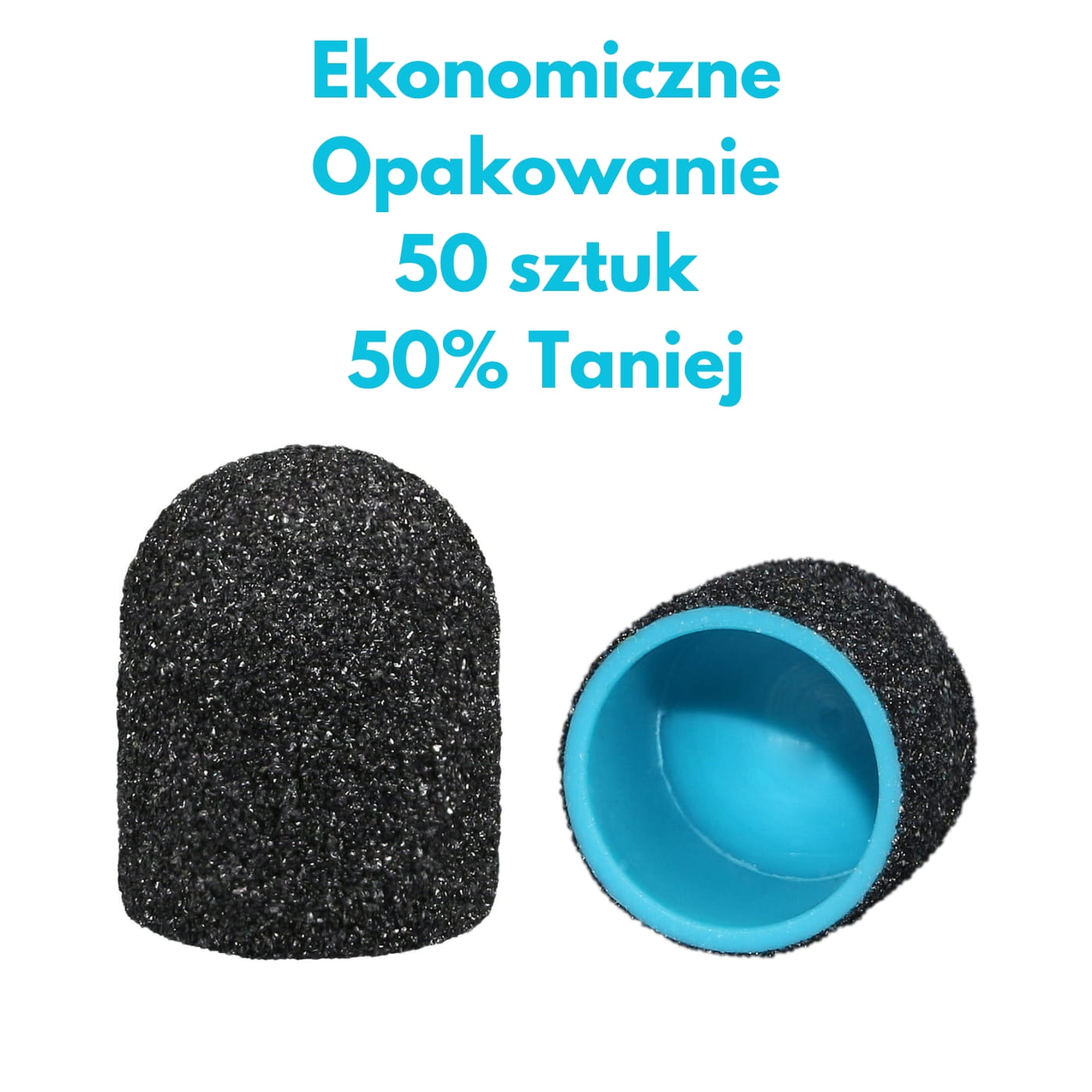 Zapewnij sobie profesjonalne wykończenie dzięki turkusowym kapturkom do manicure i pedicure. Rozmiar 13 mm, gradacja 80, zestaw 50 sztuk. Idealne dla salonów i do użytku domowego.