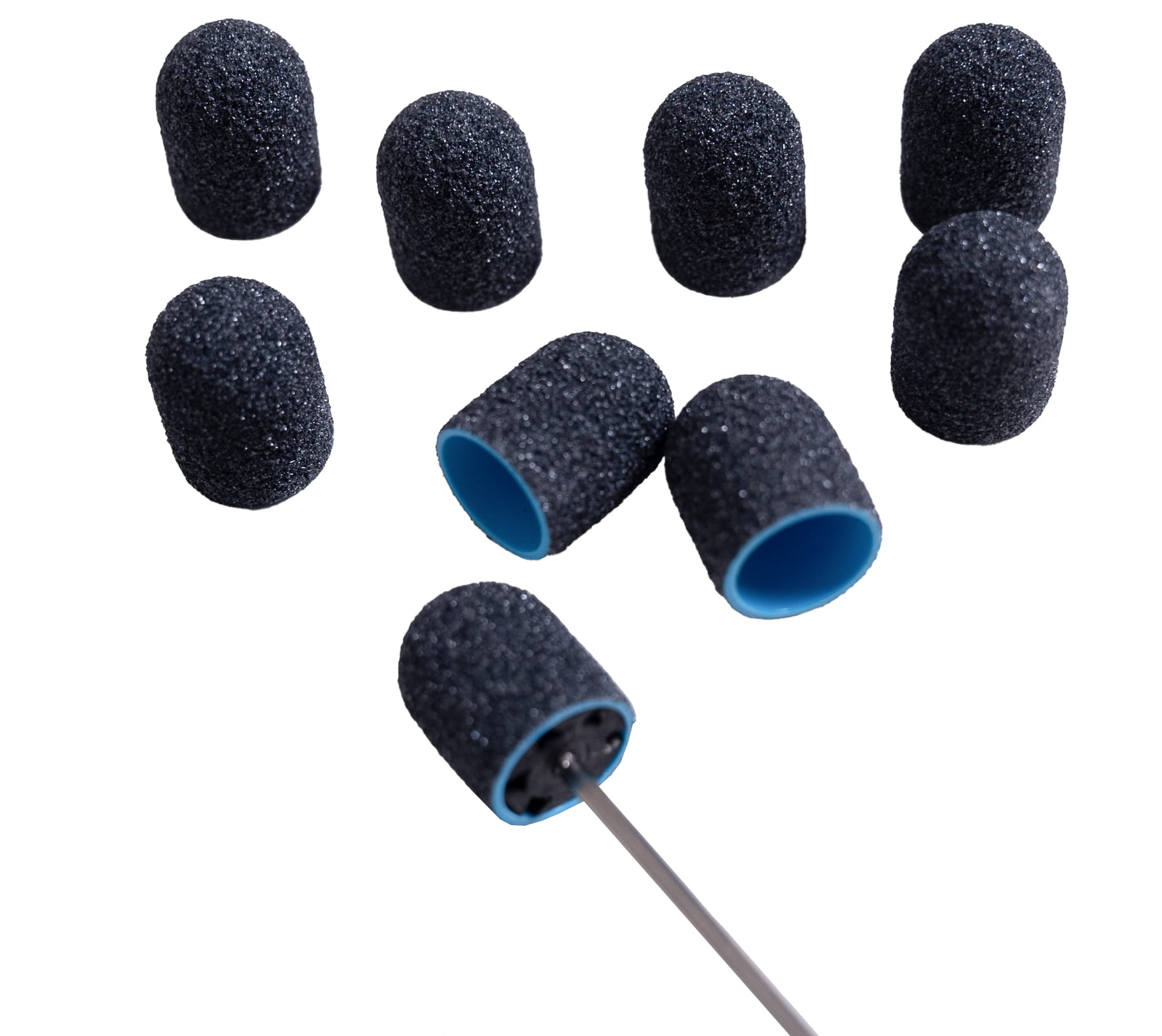 Zestaw zawiera 50 sztuk kapturków o średnicy 13 mm i gradacji 80. Dlatego produkt doskonale radzi sobie z twardszymi paznokciami oraz zrogowaciałym naskórkiem. Dodatkowo turkusowy rdzeń ułatwia szybką identyfikację gradacji podczas pracy.