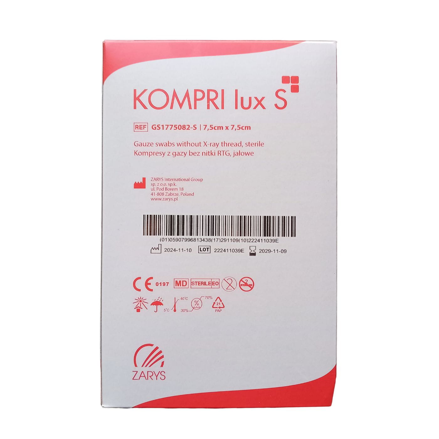 KOMPRI lux S – Jałowe Kompresy Gazowe Bez Nitki RTG, 7,5×7,5 cm, 17N, 8W. Bezpieczne, higieniczne, skuteczne w opatrywaniu ran i zabiegach kosmetycznych. Kup teraz!