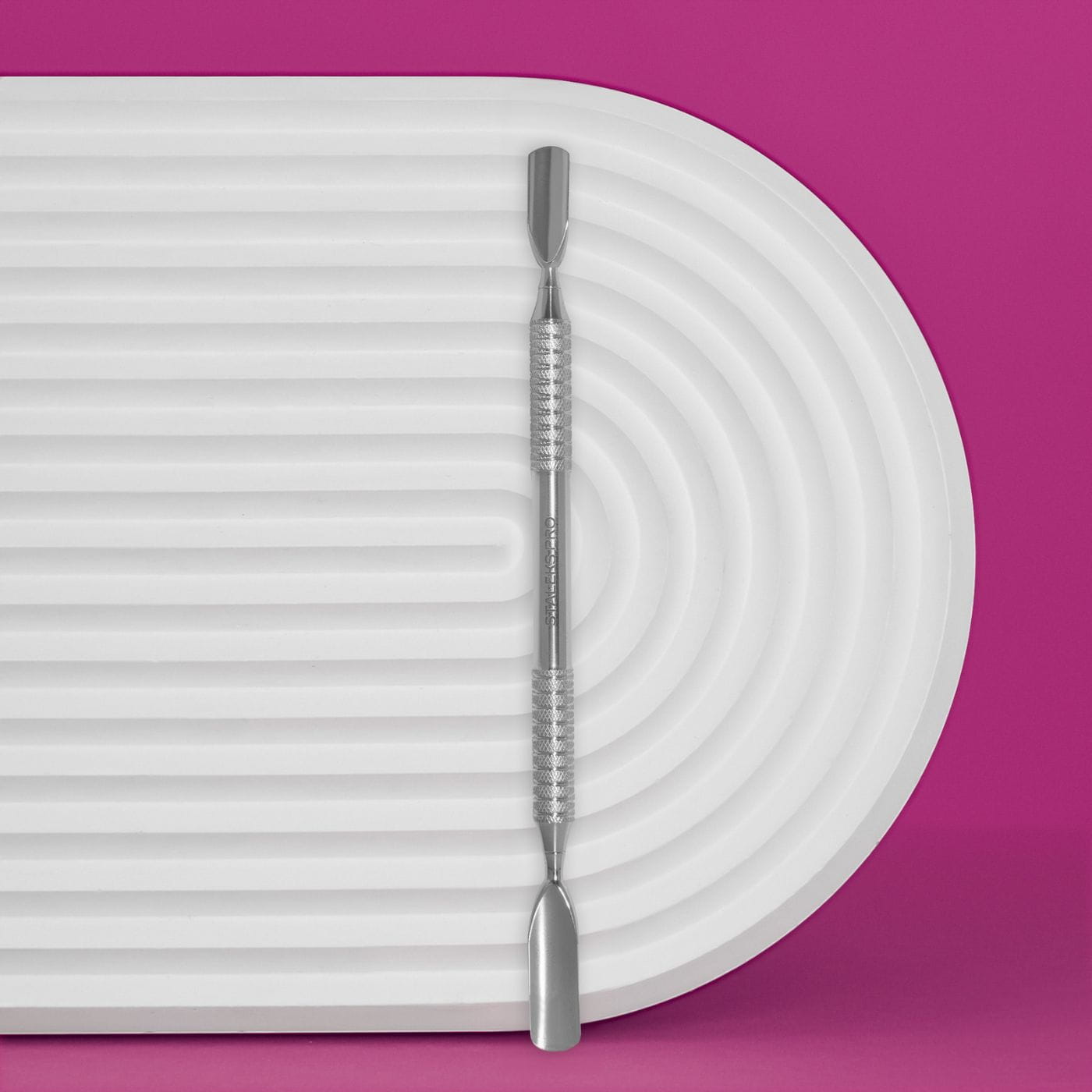 Skośny pusher umożliwia podnoszenie i odsuwanie skórek, dlatego sprawdza się przy pracy z trudniejszym naskórkiem. Dzięki temu przygotowanie paznokcia do stylizacji staje się dokładniejsze.
