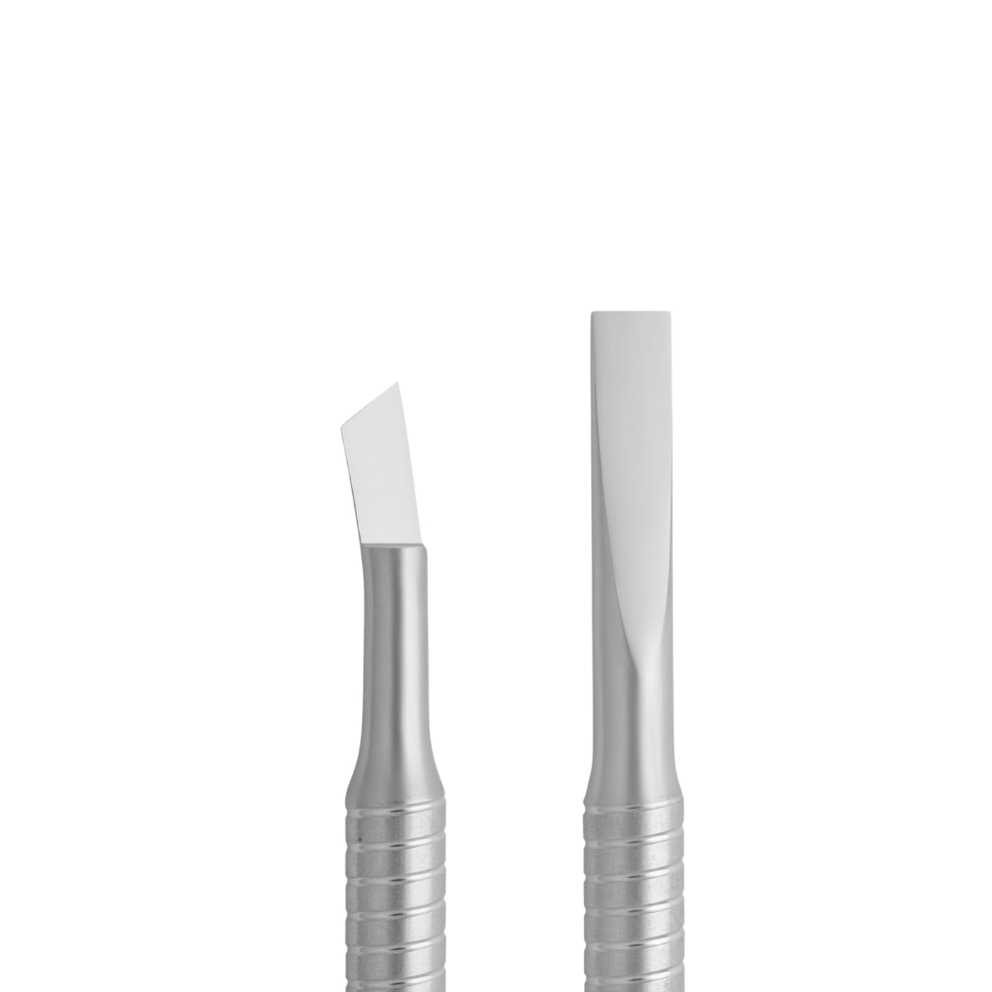 Popychacz jest przeznaczony do odpychania naskórka, a ostrze służy do czyszczenia przestrzeni podpaznokciowej i usuwania martwego naskórka z paznokcia.