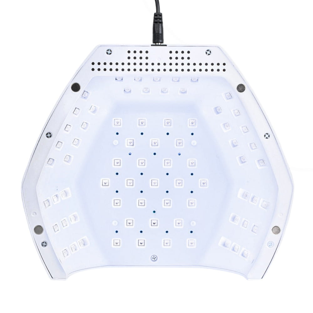 Lampa ma wyjątkowo dużą przestrzeń, dzięki czemu swobodnie można do niej wsunąć dłoń utwardzając 5 paznokci na raz. Dzięki temu czas wykonywania stylizacji może być znacznie krótszy!