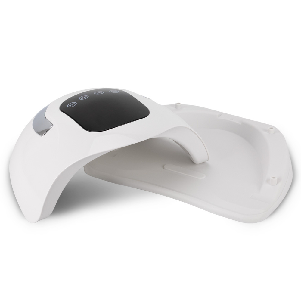 Tryb Low Heat Mode stopniowo zwiększa moc, co ogranicza uczucie pieczenia podczas pracy z żelami budującymi. Sensor ruchu automatycznie uruchamia urządzenie, a duży wyświetlacz elektroniczny ułatwia kontrolę czasu.