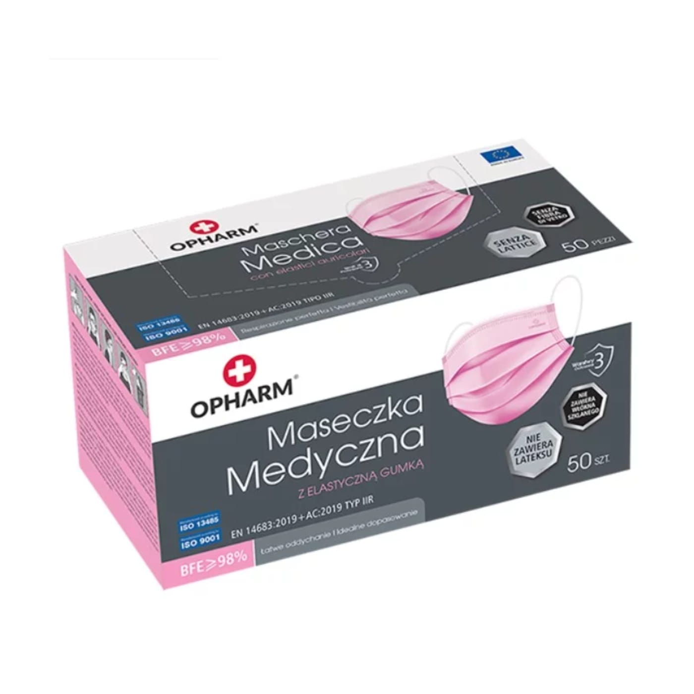 Maska Medyczna Opharm 50 sztuk pudełko różowa