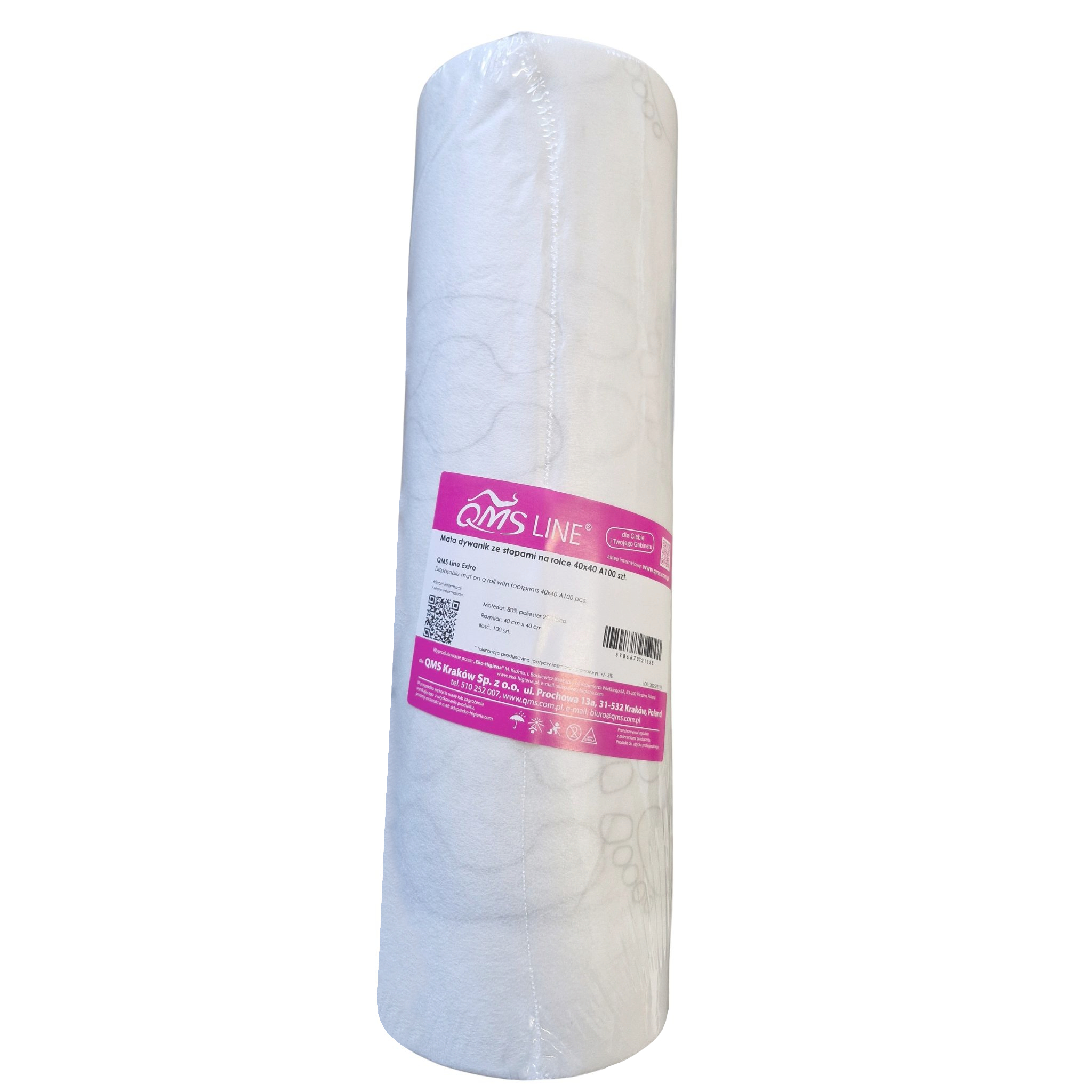 Mata jednorazowa do pedicure ze wzorem stóp z linii QMS Line Premium stanowi praktyczne wyposażenie salonów kosmetycznych oraz SPA. Produkt pomaga utrzymać higienę podczas zabiegów pielęgnacyjnych stóp. Dzięki temu stanowisko zabiegowe pozostaje estetyczne oraz profesjonalnie przygotowane.