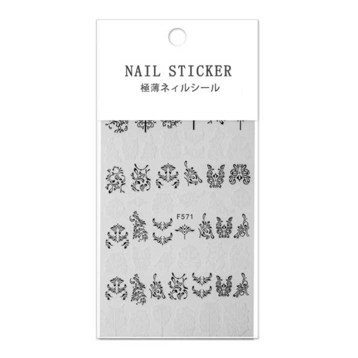 Naklejki do paznokci cienkie samoprzylepne ornamenty F571 – arkusz 12 x 7,5 cm