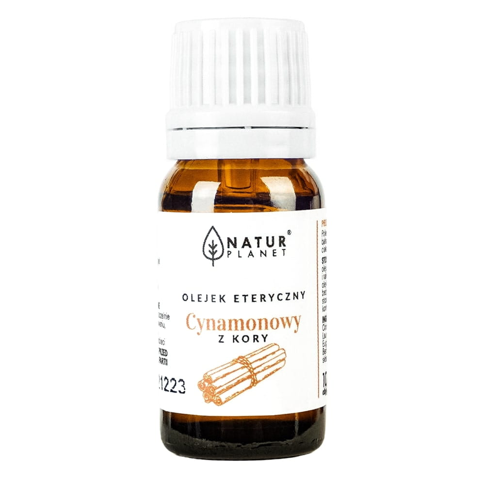 Olejek eteryczny cynamonowy NaturPlanet to produkt przeznaczony do aromaterapii oraz pielęgnacji ciała. Pozyskiwany jest z kory cynamonowca cejlońskiego, dlatego wyróżnia się intensywnym, korzennym zapachem.