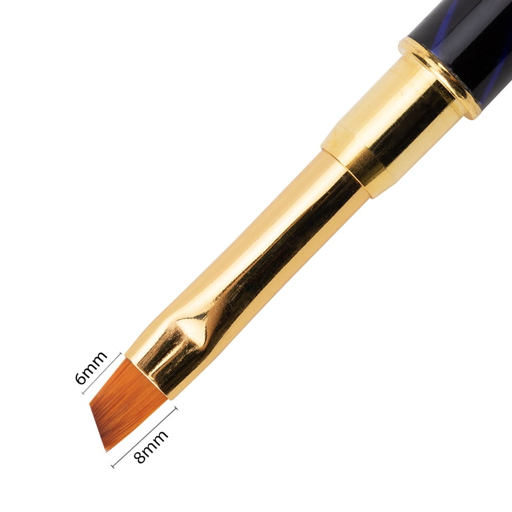 Pędzelek do żelu w rozmiarze 6 o skośnym kształcie to narzędzie do precyzyjnej pracy techniką żelową. Dzięki temu umożliwia dokładne rozprowadzanie produktu oraz modelowanie paznokci. Wysokiej jakości włosie nylonowe zapewnia sprężystość i kontrolę podczas stylizacji.