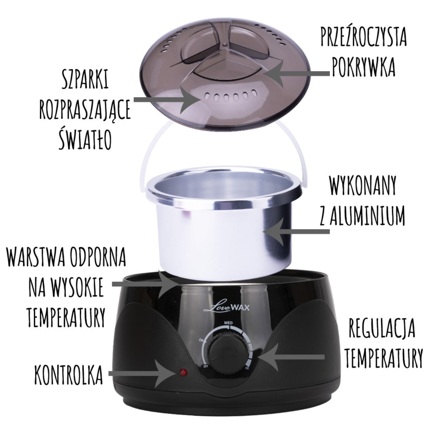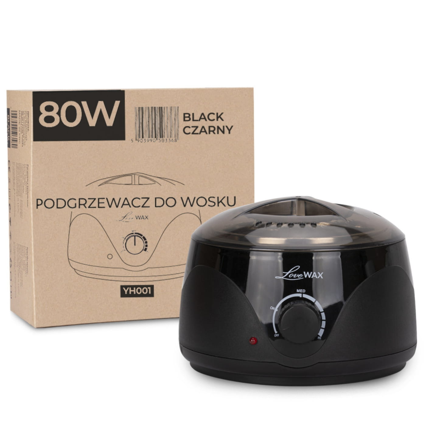 Podgrzewacz do wosku LoveWax YH001 – 500 ml, czarny. Profesjonalne urządzenie do efektywnego podgrzewania wosku w puszce. Regulacja temperatury, szybkie nagrzewanie i wygodna obsługa. Idealny do salonów kosmetycznych i domowej depilacji.