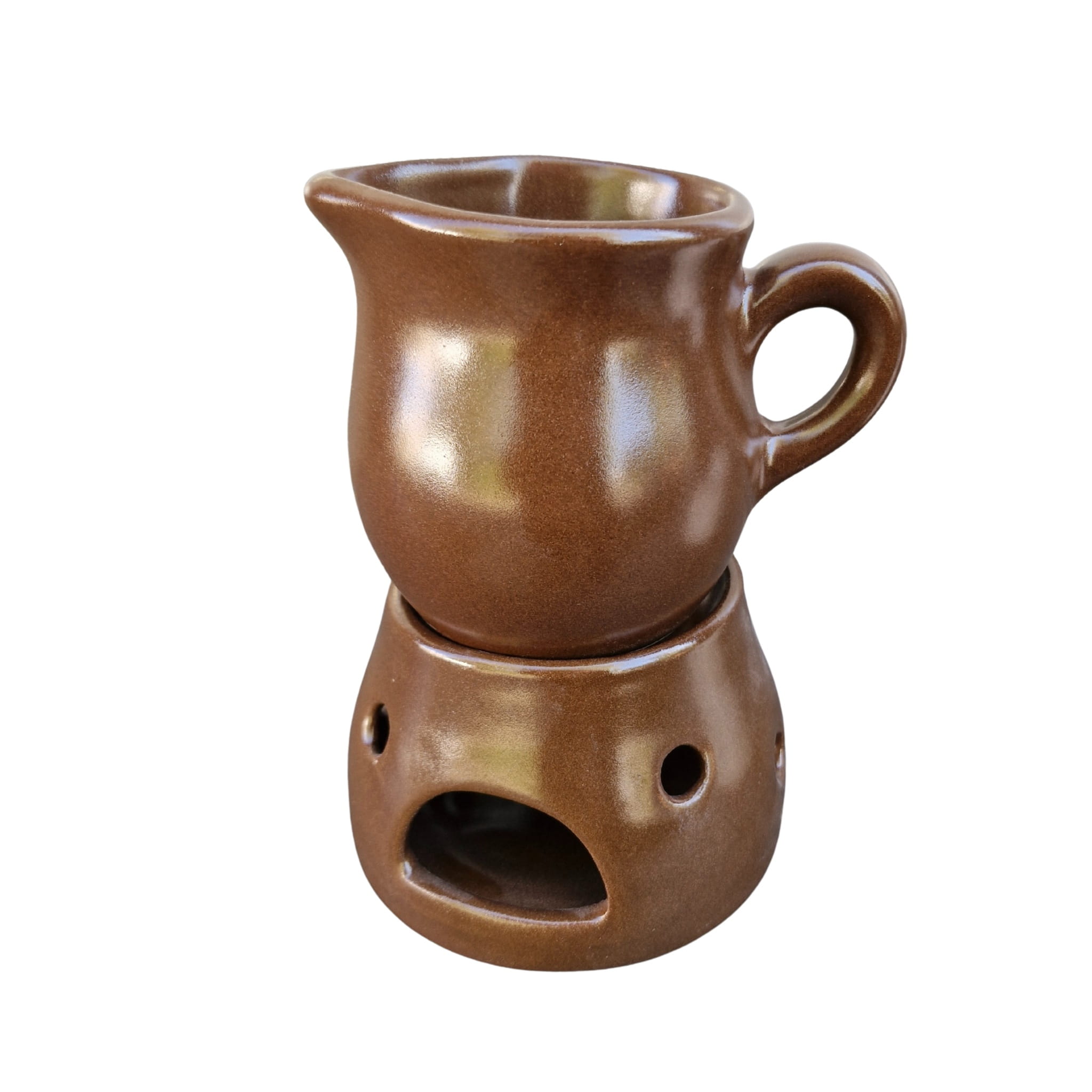 Podgrzewacz ceramiczny pojedynczy brązowy mat – 10 × 7 cm