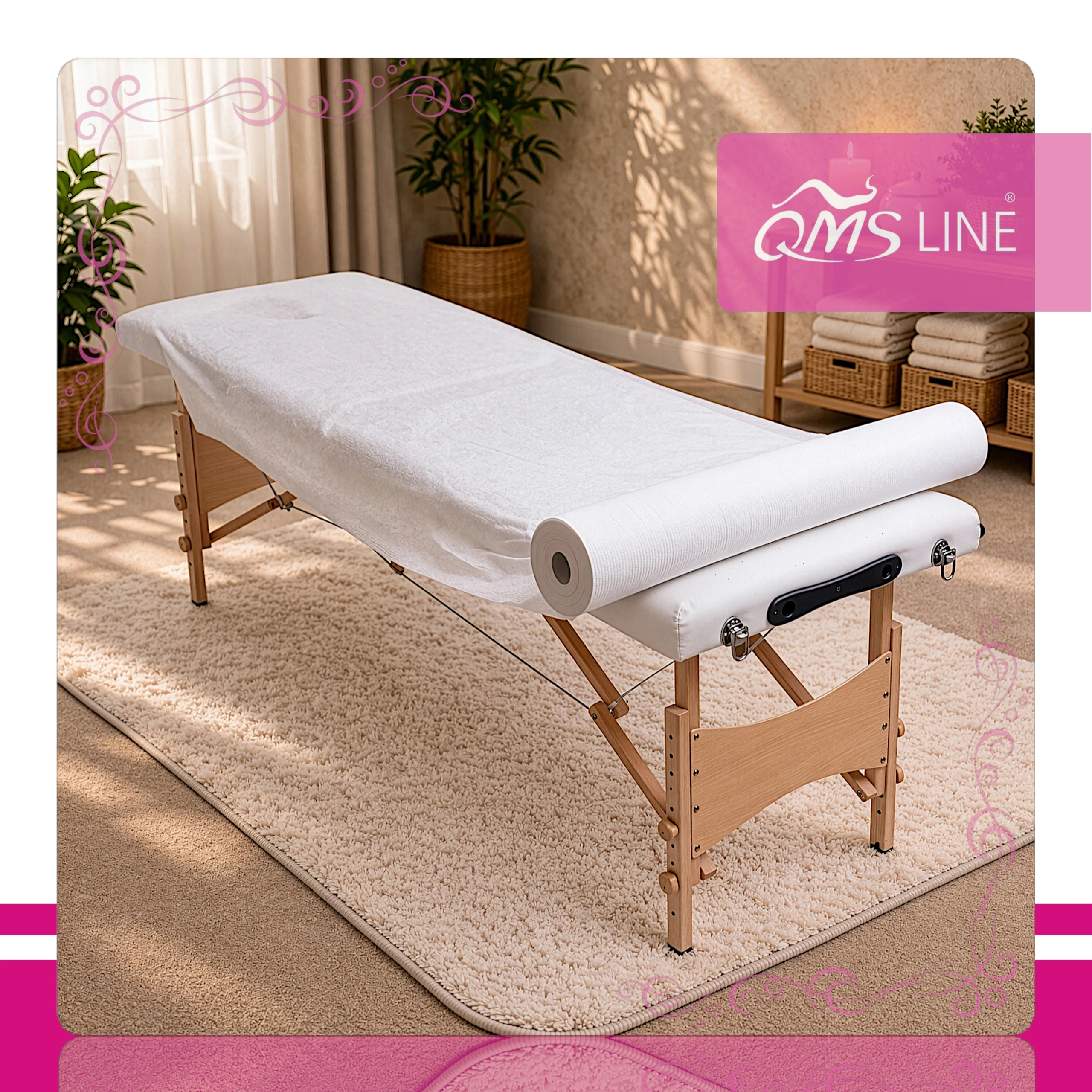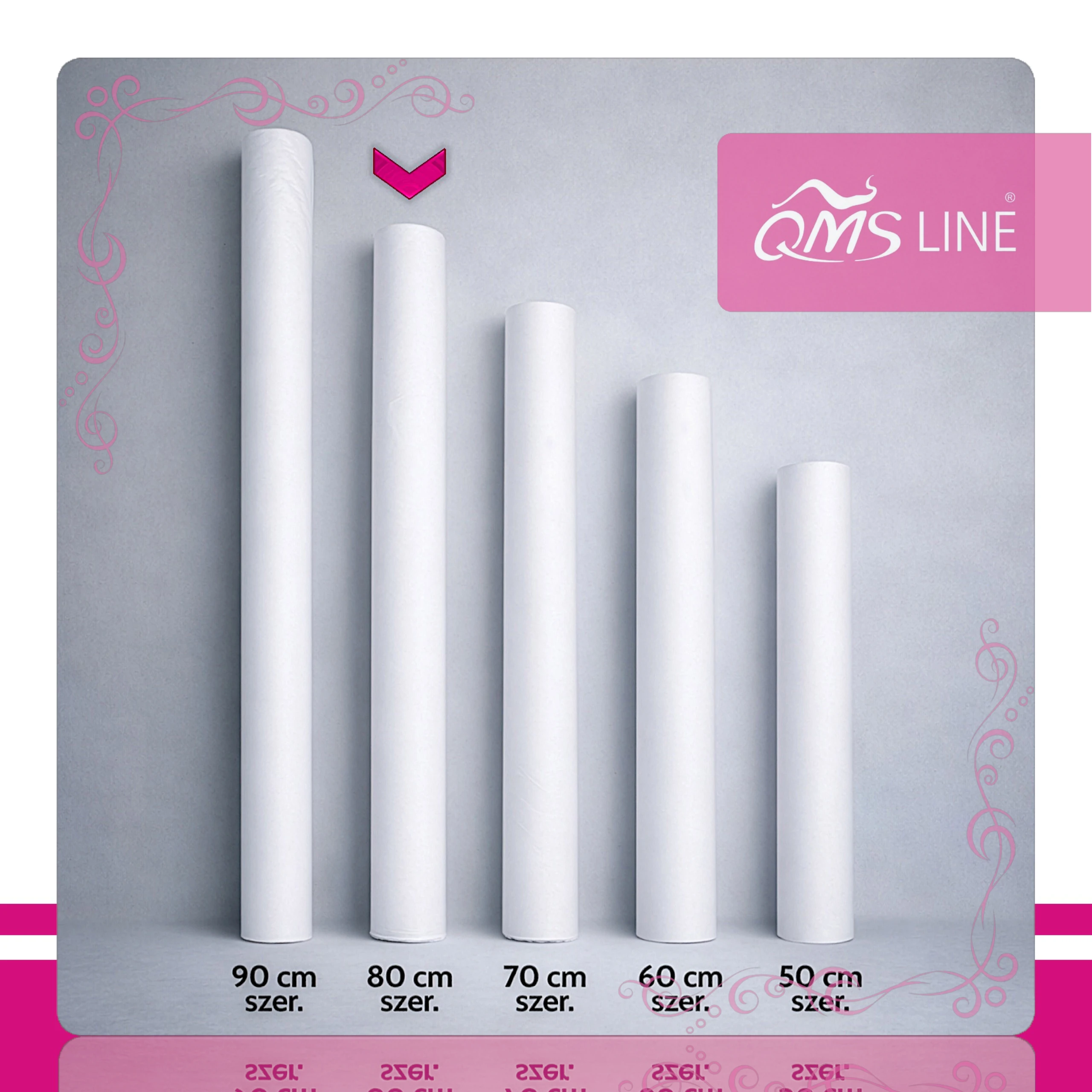 Podkład kosmetyczny jednorazowy z włókniny, 80 cm x 200 m. Idealny do zabiegów kosmetycznych, zapewniając higienę i wygodę. Wybierz QMS Line Standard – profesjonalna jakość w przystępnej cenie!