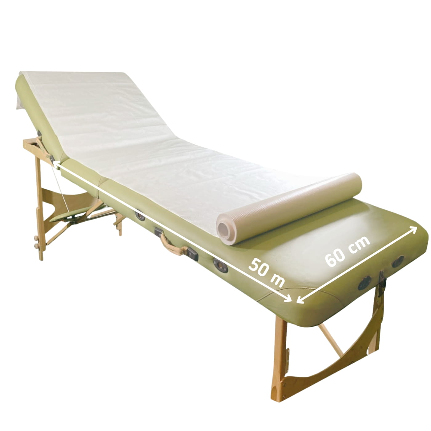 Podkład papierowy podfoliowany na rolce 58 cm x 50 m – wytrzymały, chłonny i wodoodporny. Idealny do gabinetów kosmetycznych, medycznych i SPA. Zapewnia higienę i komfort podczas zabiegów.