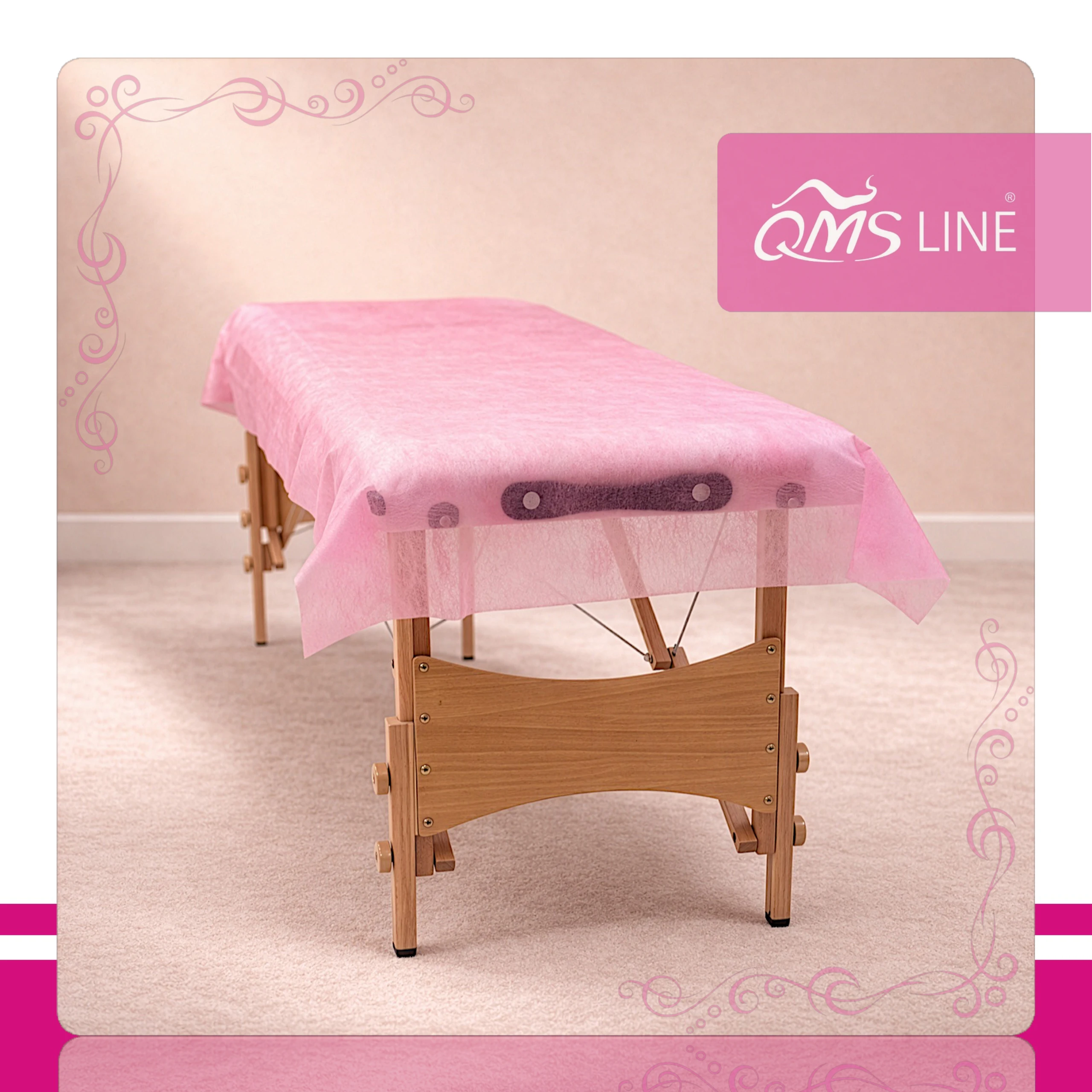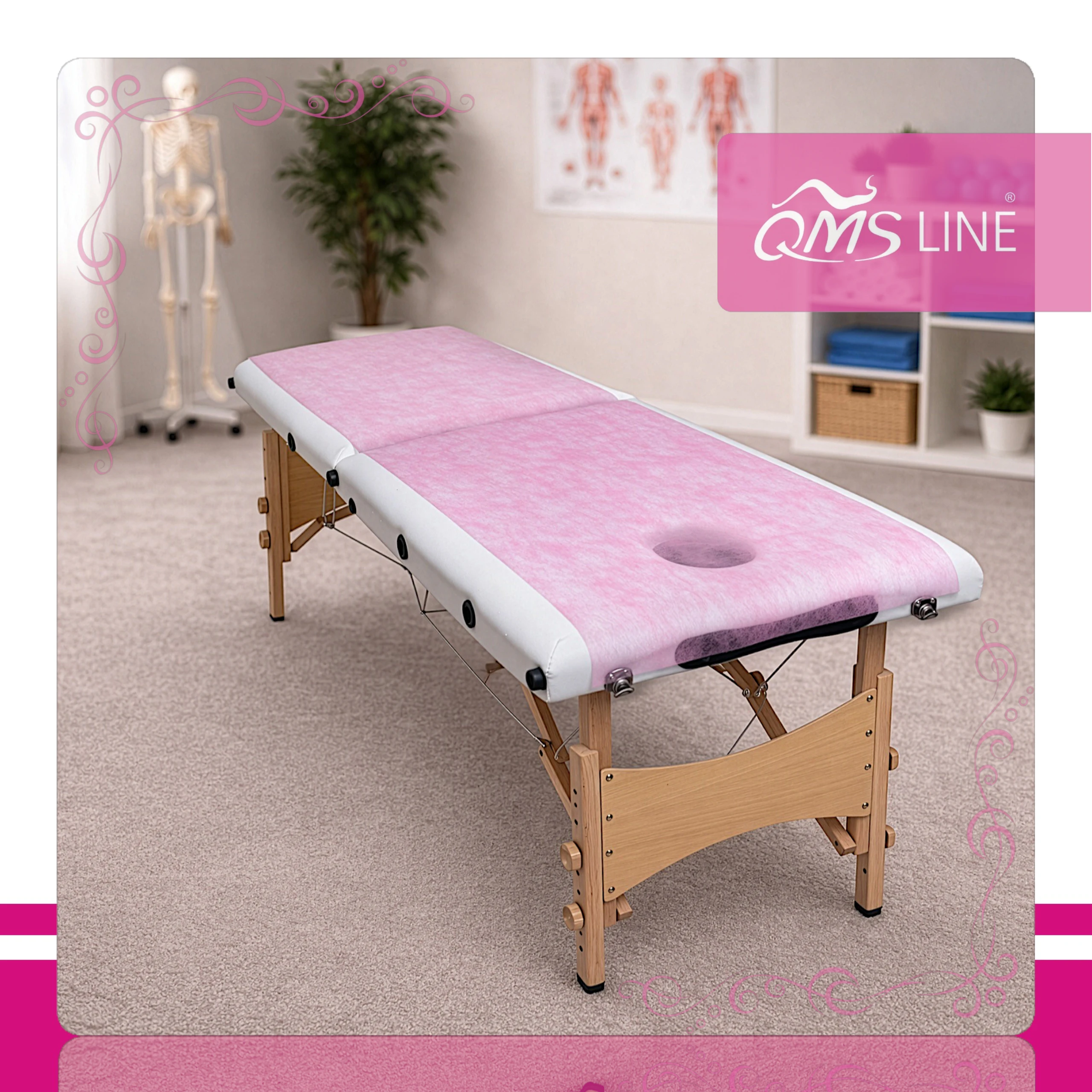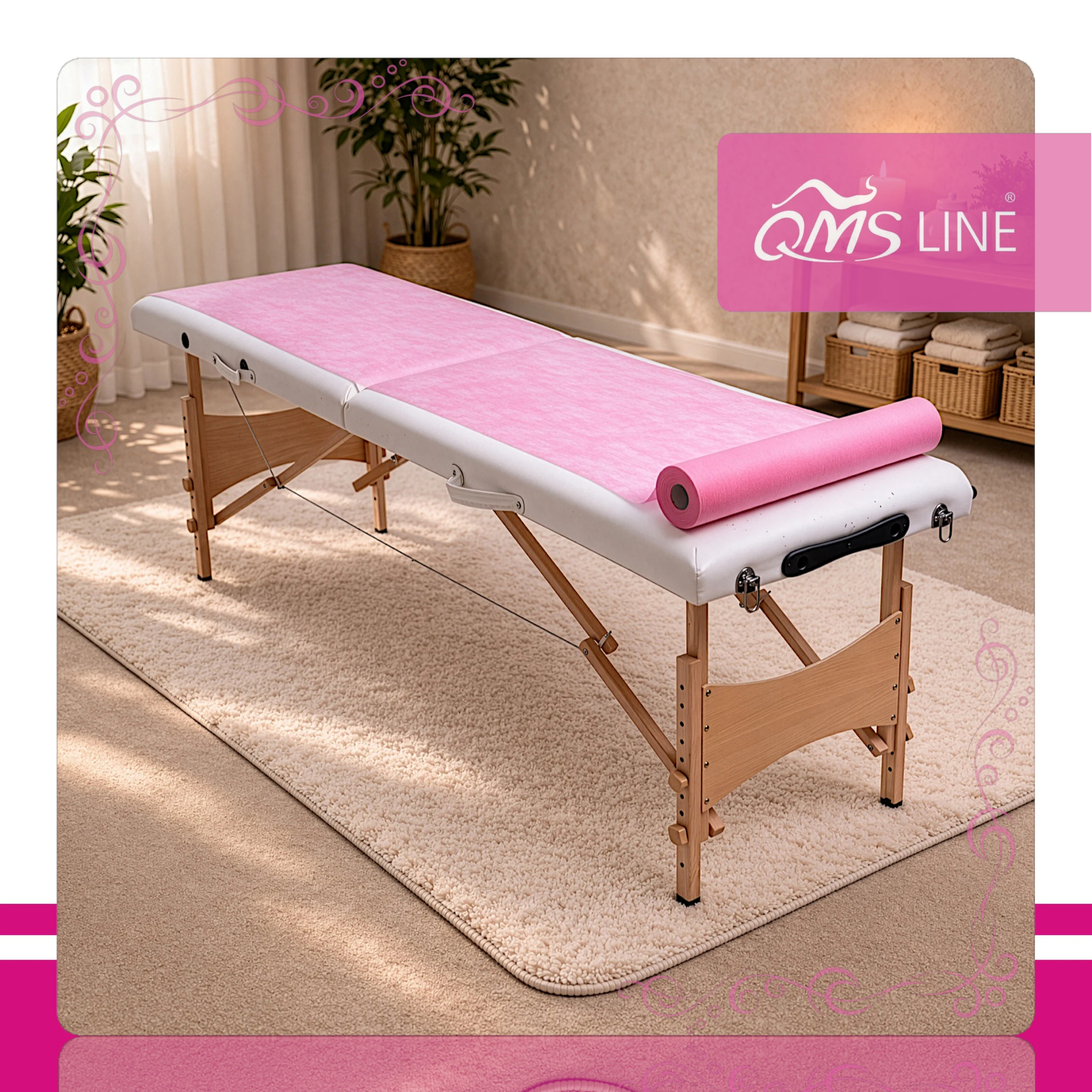 Podkład kosmetyczny włókninowy jednorazowy różowy 50 cm x 50 m 18 g – 1 rolka – QMS Line Standard