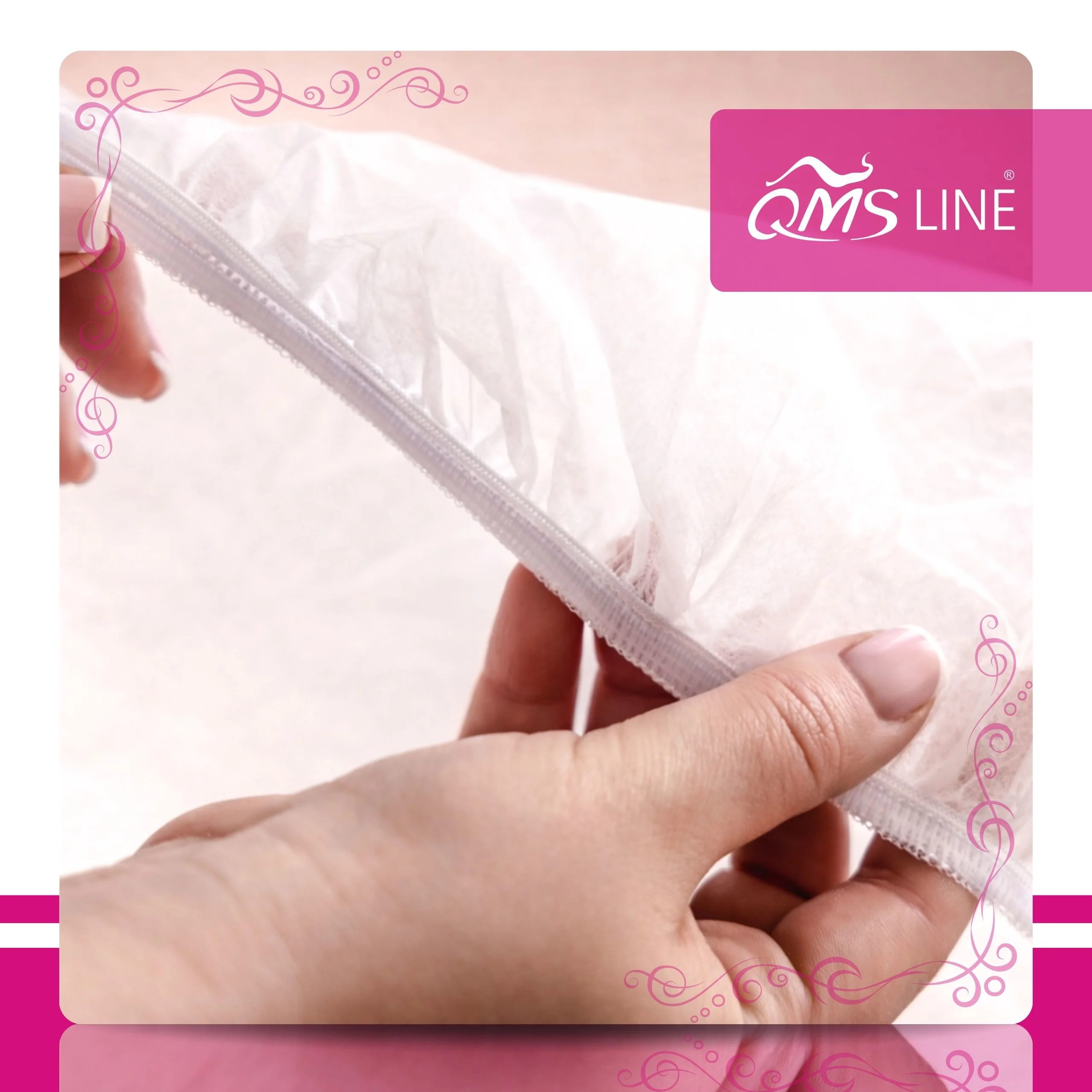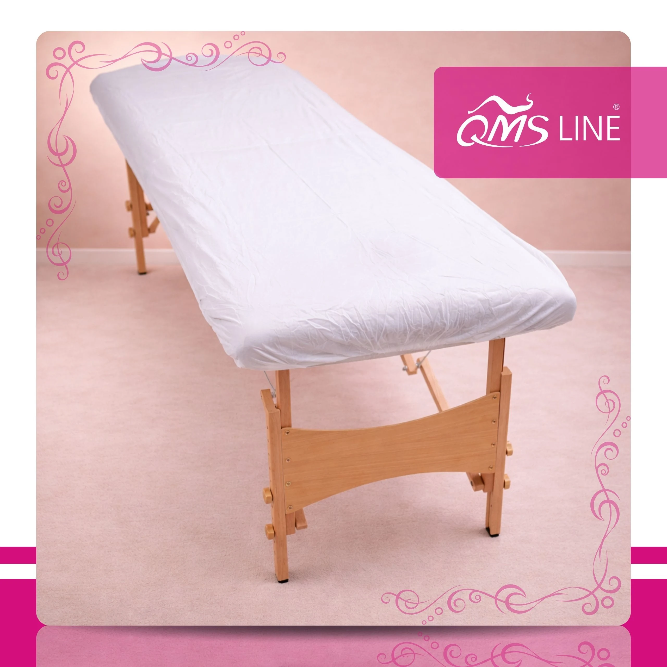 Prześcieradło włókninowe z gumką składane 100×220 cm, 1 szt. Idealne do salonów kosmetycznych i SPA, zapewnia higienę i komfort podczas zabiegów. Wybierz QMS Line Standard – niezawodna jakość i wygoda!