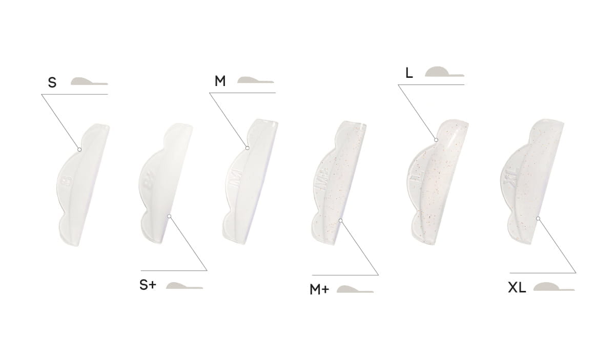 M+: Wałeczek o bardziej wypukłej budowie dla mocniejszego podkręcenia średniej długości rzęs.