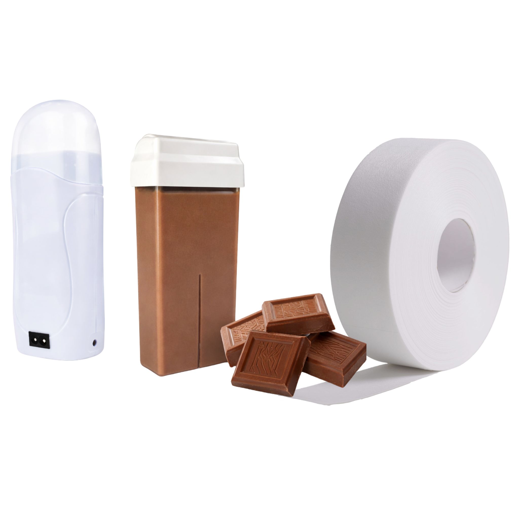 Zestaw startowy do depilacji roll-on podgrzewacz 65W wosk czekoladowy 100 ml paski 100 mb – komplet do depilacji